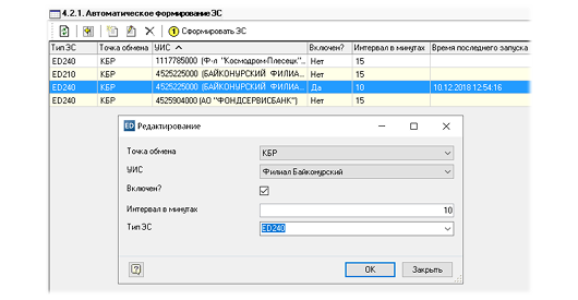 В модуле EDSmart реализована процедура, позволяющая создавать исходящие сообщения типа «запрос» в автоматическом режиме по заданному расписанию.
