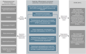Адаптер позволяет организовать регулярный мониторинг состояния клиентов и контрагентов банка на основе ежедневного автоматического анализа изменений сведений, содержащихся в ЕГРЮЛ и ЕГРИП.